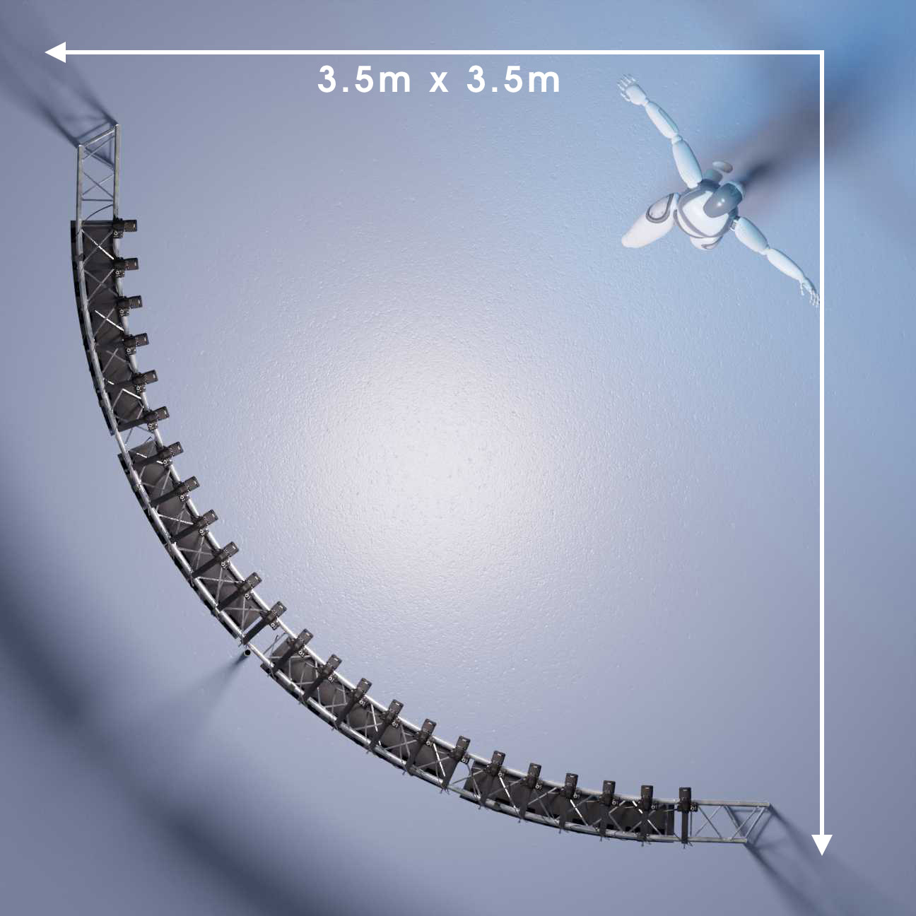 Stylish clean design with fast setup and even quicker removal! All lighting, 2 members of bullet time photography staff, computers and software etc are included. Branded backdrop optional, wowing any party. With a footprint of 3.5 x 3.5 Meters that uses only a standard 240v power socket. We even provide 4G internet, if needed, to send the bullet time movies through our bespoke software.