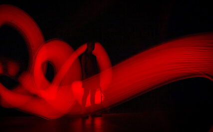 The process we used captured the motion using Bullet Time Light Painting, with all the cameras set to long exposure of 4 seconds and a curtain flash to freeze the subject.