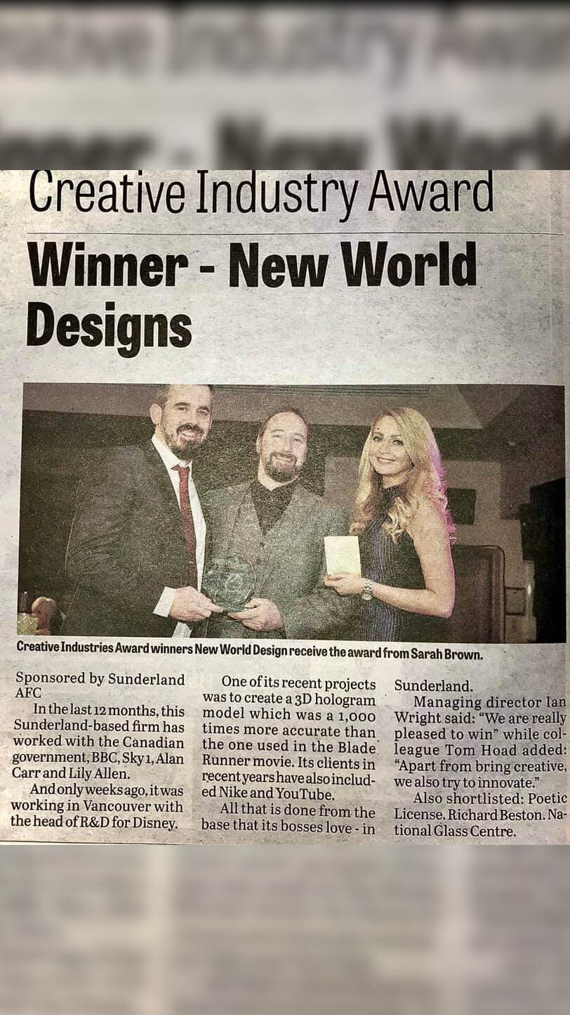 Two years ago we won “Creative Business of the Year 2017”, last year we won “Small Business of the Year 2018“, but this year we have achieved the amazing Creative Business of the Year 2019 in the Sunderland Echo Portfolio Awards!