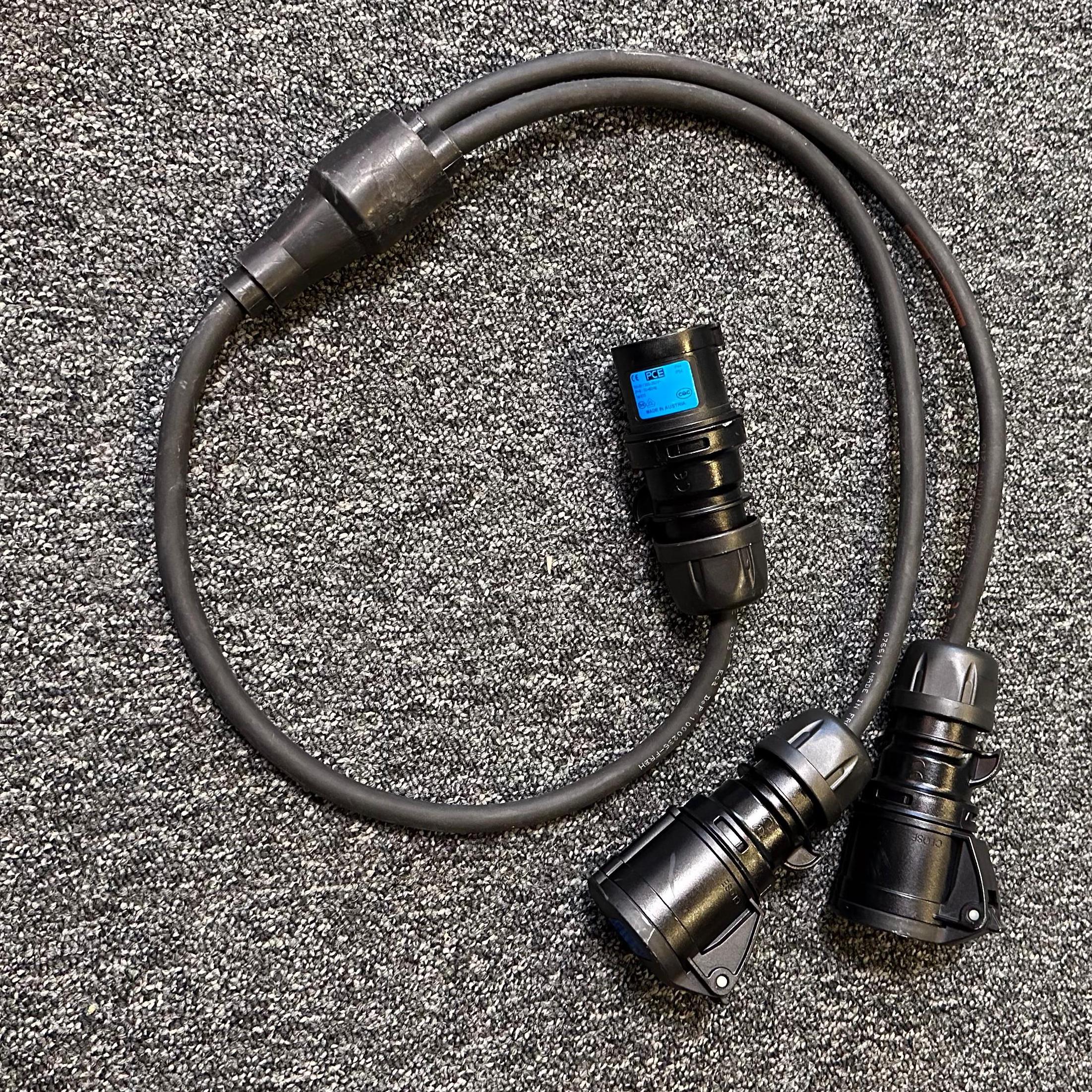 Fully moulded and factory made Y connection, with 3 PCE heavy duty 16amp connectors.